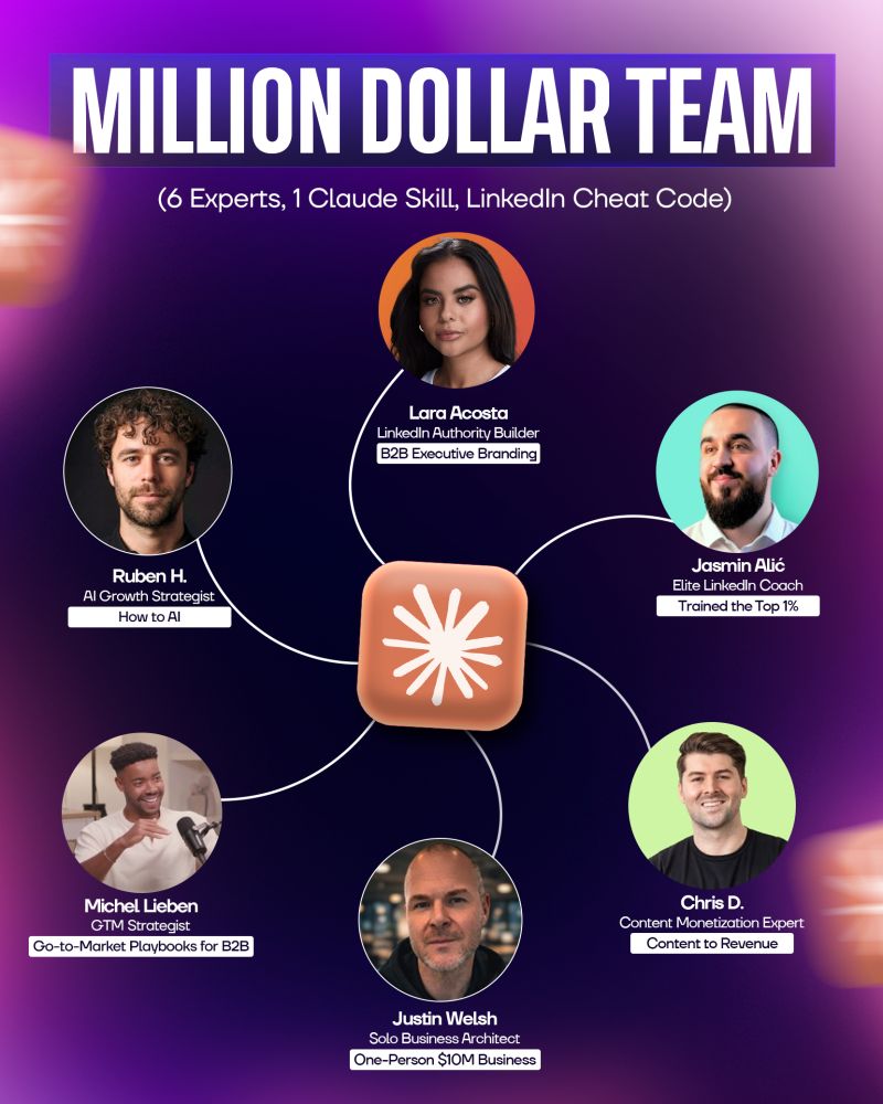 You now have access to 6 AI LinkedIn Mastermind who’ve collectively generated 500M+ impressions and built multiple 7-figure businesses.
