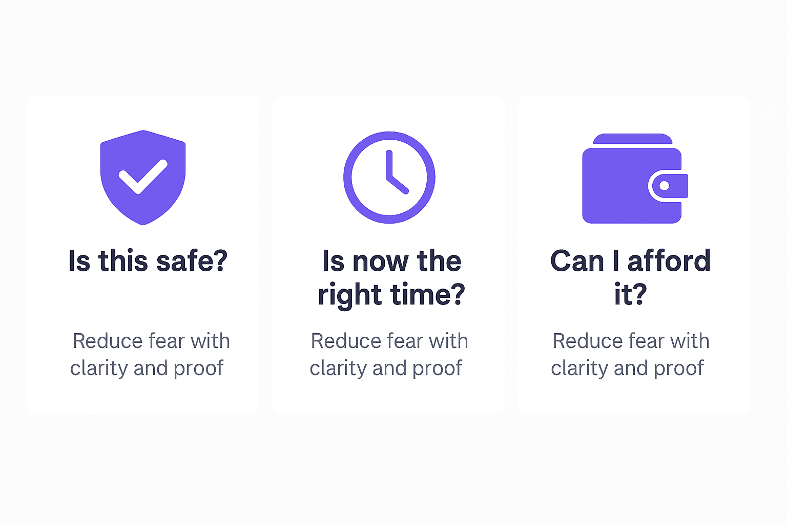 “Will this work for me?”Repeat their specific situation + relevant proof