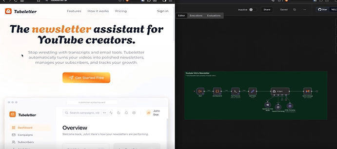 The SaaS version (Tubeletter) lets users: